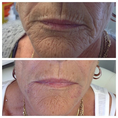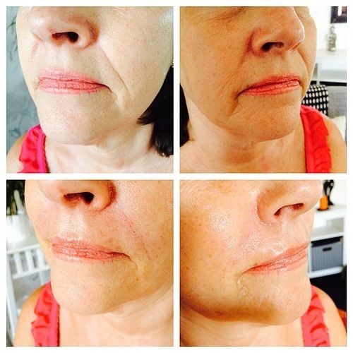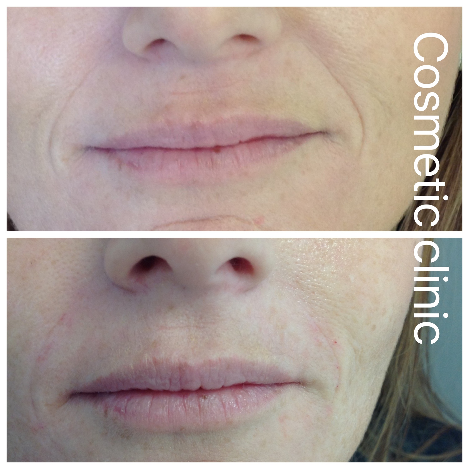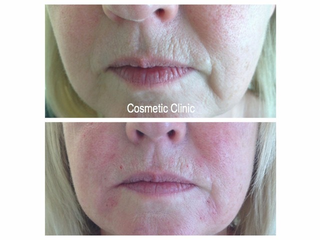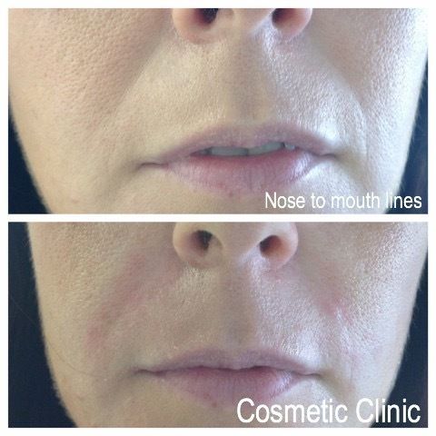 Nose to mouth areas filled with Dermal Fillers Pictures taken pre and immediately post treatment.