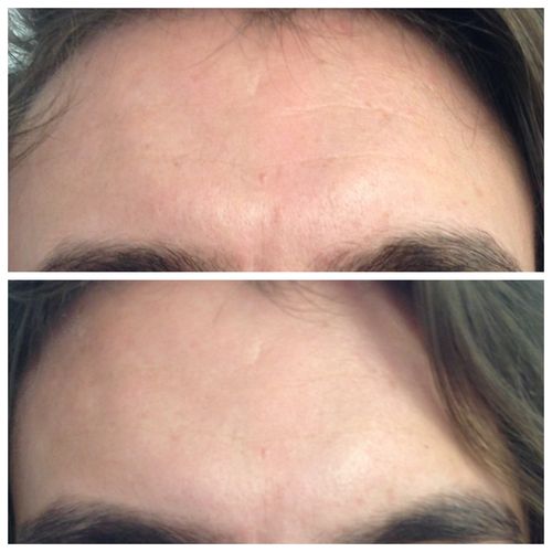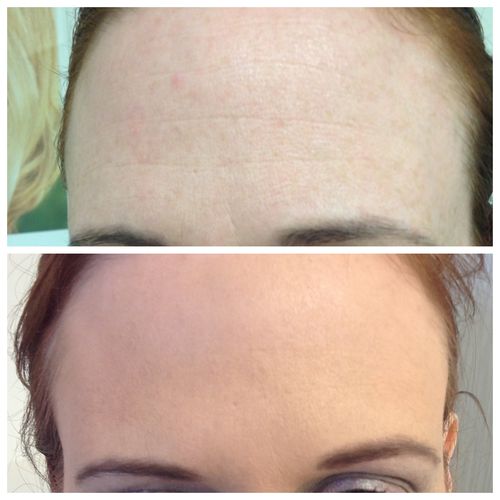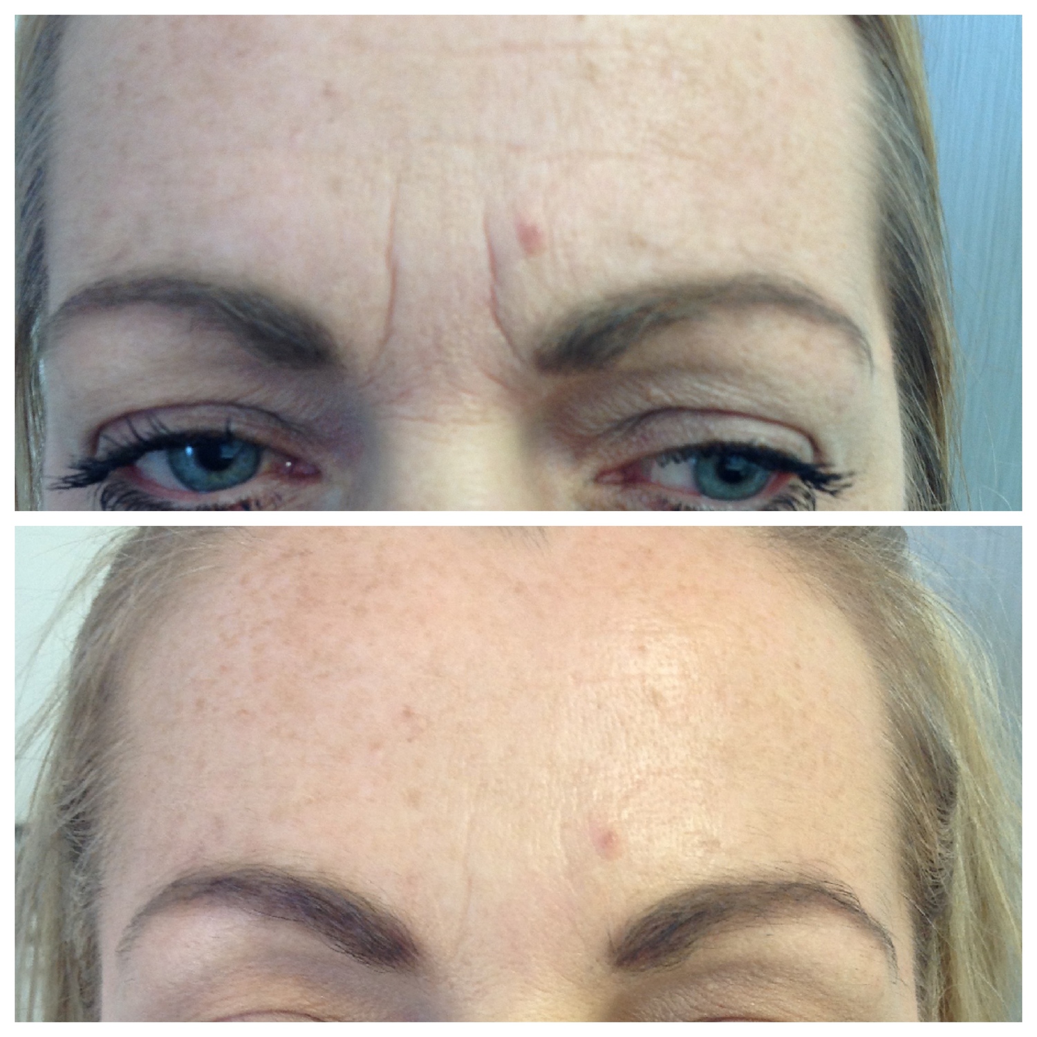 Wrinkle Softener muscle relaxant using a toxin pictures taken pre treatment and at 14 days post treatment